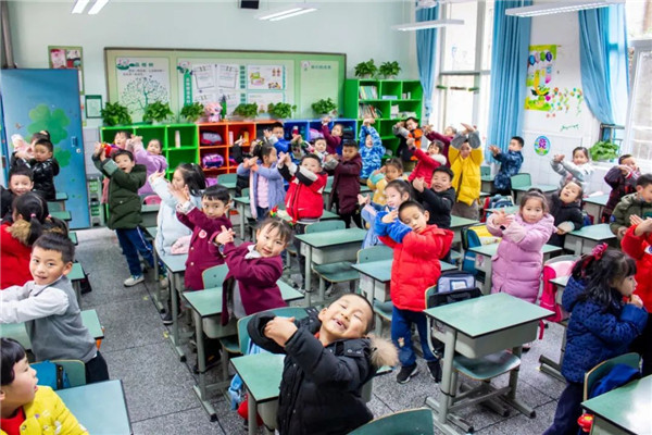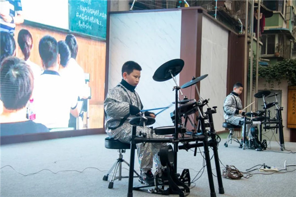 为了在母校“生日会”上表演,孩子们在老师的带领下积极准备。
