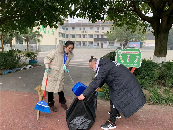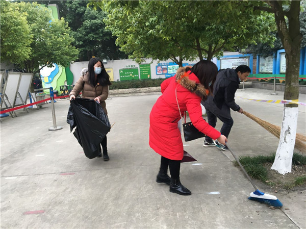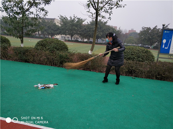 会后,全体党员分成两个党小组,进行党员志愿者活动——卫生大扫除。在党支部书记白兰逞同志“大家行动起来!”的号令下,第一党小组前往校门口停车场和循乐园进行打扫。第二党小组则负责校园内公区卫生的打扫。