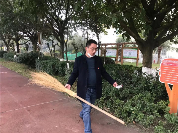 活动中,大家分工明确,有的扫地,有的捡垃圾,有的装垃圾,大家虽然干得大汗淋漓,却一个个笑容满面,激情满满,充分展现了党员同志的模范带头作用。