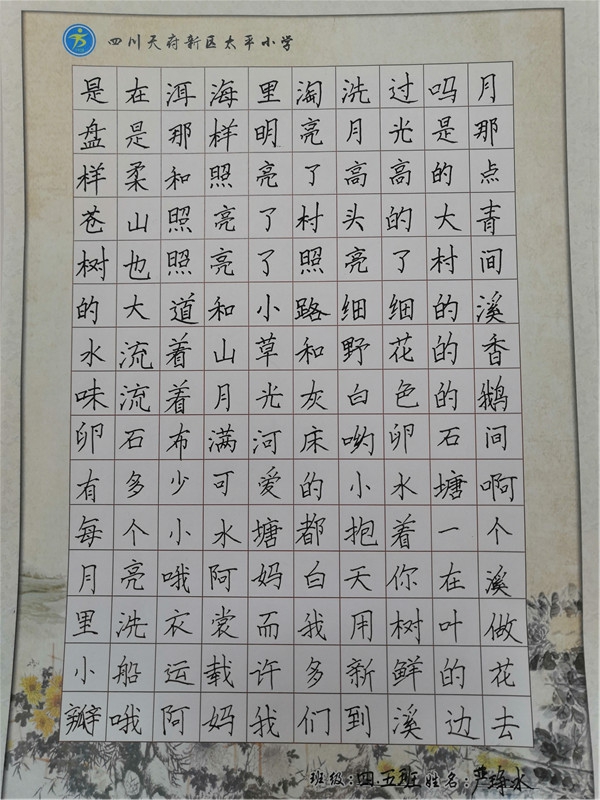 2020年12月14日-12月17日,成都天府新区太平小学开展了第三届“美心杯”活动。本届活动包括学生数学思维训练、硬笔书法和教师硬笔书法比赛。