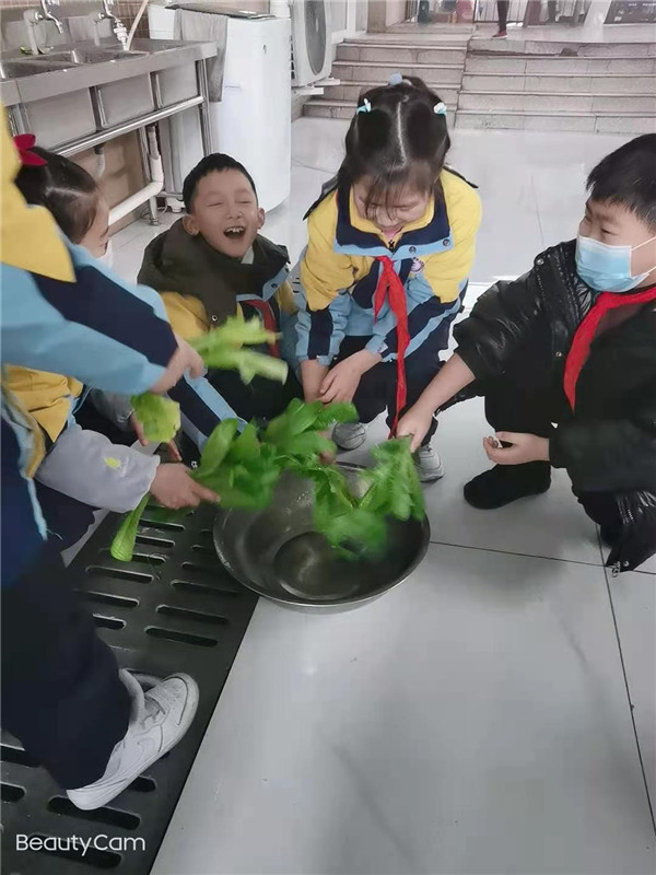 采摘活动得到家长们的积极支持。为了让孩子们的劳动成果变成可口的菜肴,各班选出家长代表参与“美味制作”,家长们不仅仅提供了技术支持,还亲自参与美食加工,孩子们承担了莴笋采摘、清洗等任务,大家细心地将莴笋从根部割下来,然后再一根根地清洗干净,冬天不觉冷,冰水不可怕,星宝星妹们的认真劲儿让采摘活动更加热闹与火热……