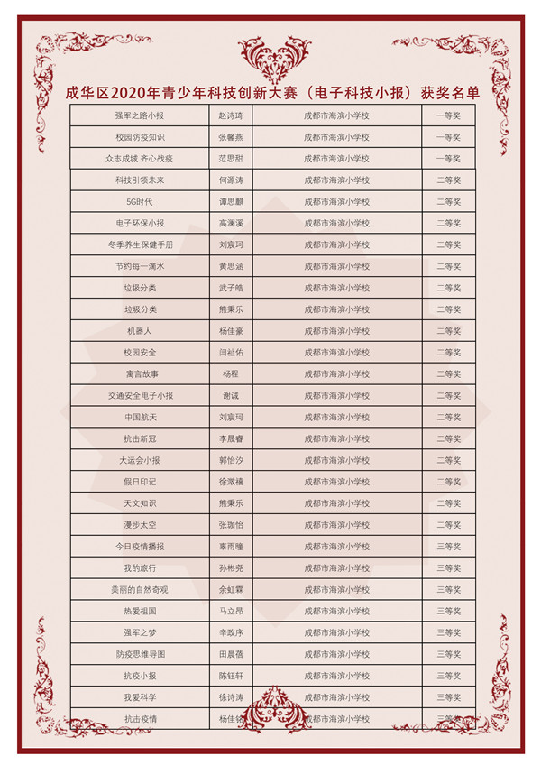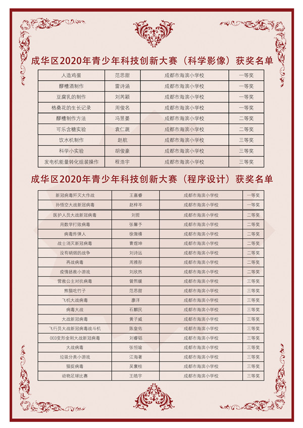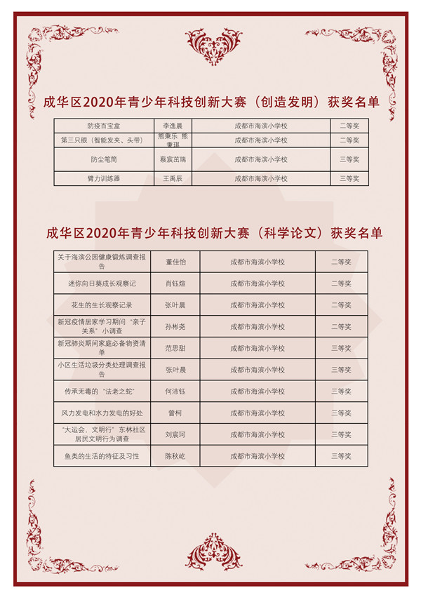 为进一步增强学校学子创新意识和动手能力,不断提升学生的科技素养,同时培养学生对科学技术的兴趣和动手能力,成都市海滨小学学子积极参加了成华区2020年青少年科技创新大赛。