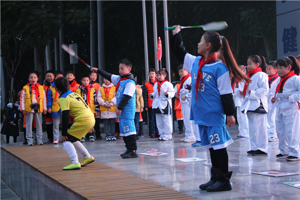 表演接近尾声,三年级二班的家长代表上台,将绣有“爱成都 迎大运”字样的蜀绣工艺品赠与学校。一枚绣花针,起起落落,绣出了花重锦官城的美名,更绣出了孩子们对成都大运会的热切期盼。