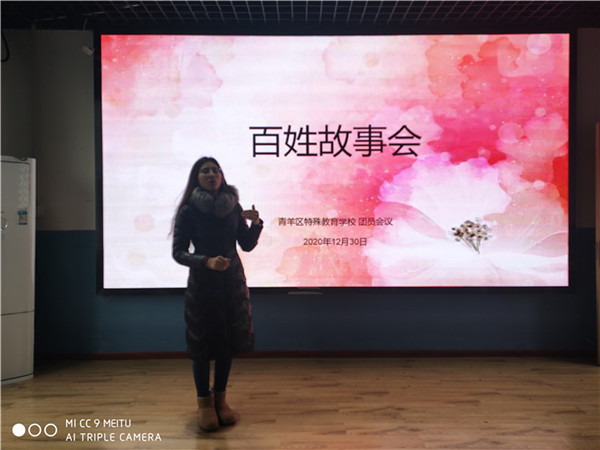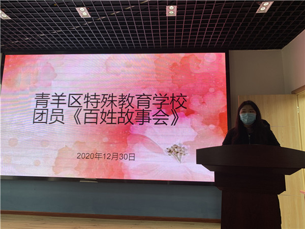 2021年1月4日下午,成都市青羊区特殊教育学校(下文简称“青羊特校”)团员老师开展了第一期《百姓故事会》。故事会由团支部书记杨白雪主持,支部委员以及全体团员教师参与会议。