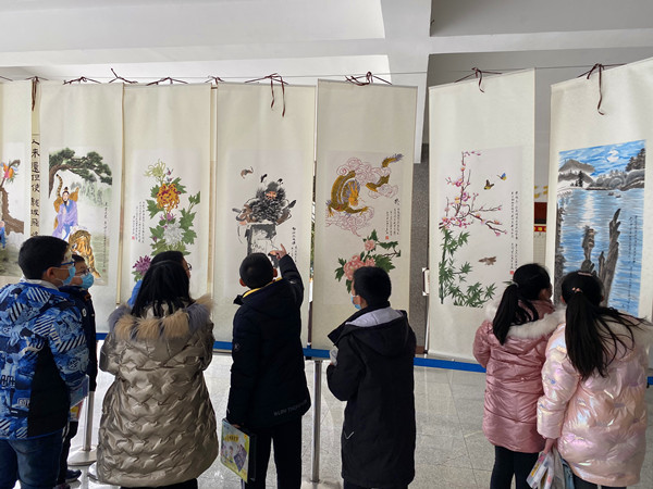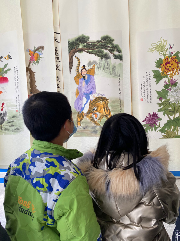 本次展示书画作品三十余幅,不仅有高贵之牡丹、圣洁之荷花,也有猛虎下山、鹰击长空、迎霜寒梅……还有隶书、小篆等。每幅作品都展现了兰知灵同学对大自然的领悟和对生活的热爱,师生、家长们观看后,都对这次书画展赞不绝口。