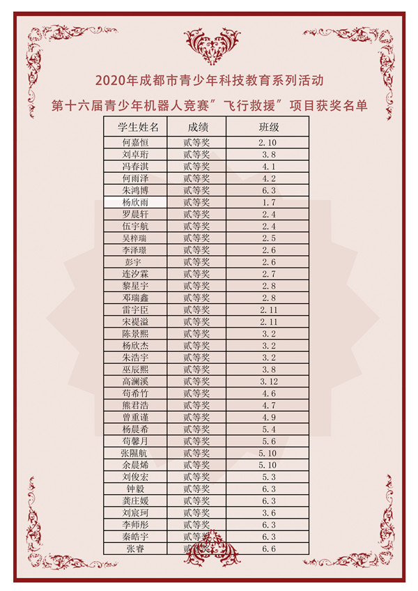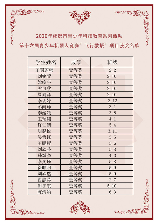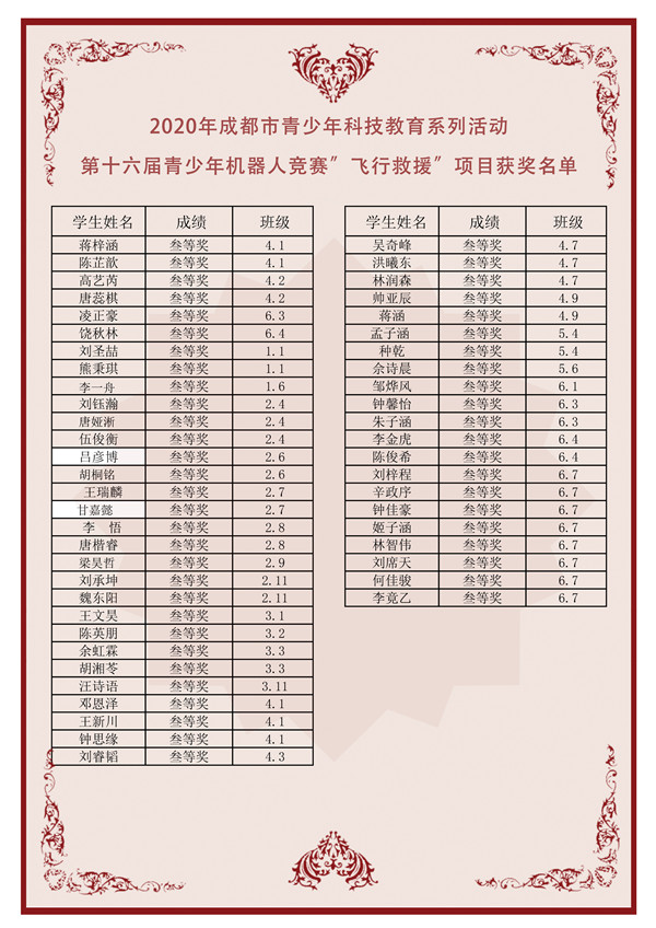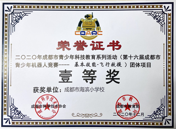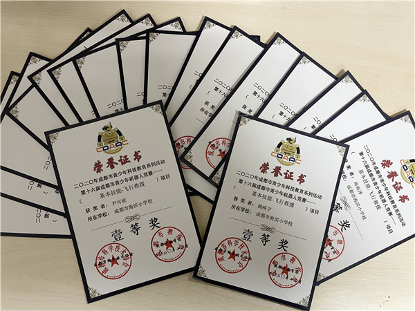 在刚刚落幕的第十六届成都市青少年机器人竞赛(基本技能—飞行救援)项目中,成都市海滨小学有305名学生参加比赛,他们在实践中体验,在体验中创新,在创新中成长。其中,95名学生获得奖项,一等奖20人,二等奖30人,三等奖45人。