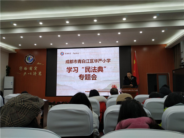 为做好《民法典》的学习教育宣传工作,达到普法、懂法的目的,通过合法手段维护自身利益,同时切实提高青少年的自我保护能力,加强青少年的法律意识。成都市青白江区华严小学于2021年1月11日下午,组织全体师生开展学习《民法典》主题活动。