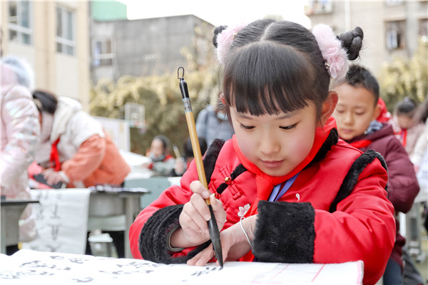 现场,同学们个个胸有成竹,他们挥毫泼墨,将经典诗词融于笔墨之中,将传统文化一脉相承。楷书、隶书、行书、草书,各种字体,样样在行,他们在方寸宣纸上描绘着青葱岁月,用心书写每一笔、每一字,浓墨淡印。一个个娟秀的字轻舞在白色的宣纸上,运笔熟练,提按分明,他们舒展大方,运笔流畅,充分展示了抚琴小学学生丰富的才艺。