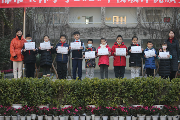 随后,郭校长为参加成都市2020年中华经典诵写讲演系列活动获得“诵经典小学组”一等奖和“诵读小明星”的同学颁奖。激励同学们要积极参加校内外各级各类活动,锻炼自己、展示自己、提高自己。