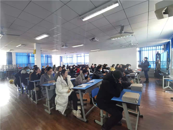1月15日,成都市泡桐树小学西区分校(以下简称:泡小西区)五楼未来教室里暖意融融,热情洋溢。学校德育管理部召集音、体、美、科学四个组的全体老师,召开学期工作总结会。根据疫情防控要求,大家佩戴口罩,间隔而坐。