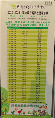 一学期的垃圾分类结束了,成都市行知小学本期总投递6748公斤,总收益7395.64元。