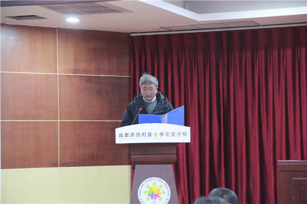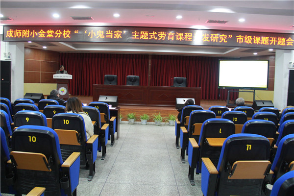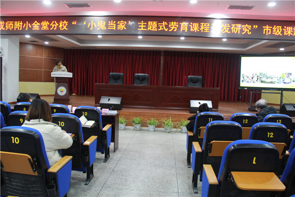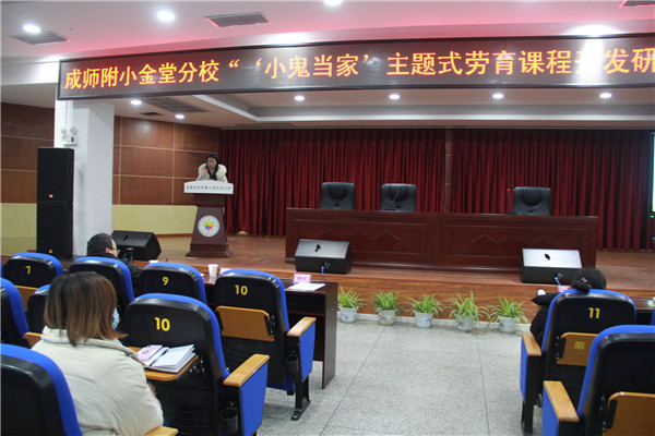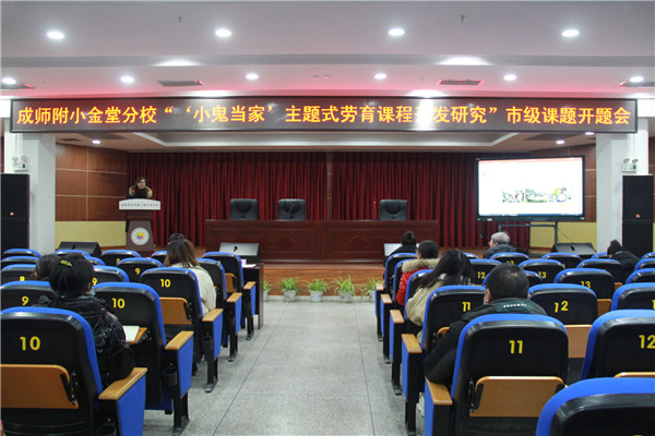 2021年1月14日,成师附小金堂分校举行了市级课题《“小鬼当家”主题式劳育课程开发研究》开题报告会。成都市教科院课程中心主任岳刚德、金堂县教育局副局长夏世琼、金堂县教育局宣教科科长罗文清、金堂县教育局教培中心主任罗军、各兄弟学校领导及老师参加了此次开题报告会。报告会由李颖老师主持,参加会议的还有学校刘蓓娟校长、杨怀英书记及课题组全体成员。