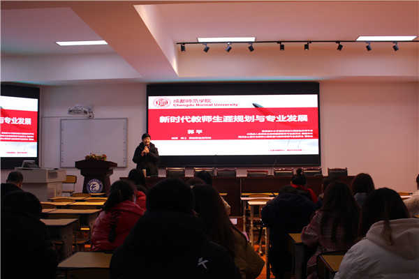 会上,郭教授指导大家做好新时代教师生涯规划与专业发展。他从自己的成长经历娓娓道来,用鲜活的故事让老师们认识到教师为什么要做职业生涯规划。郭教授认为,教育的价值是让人更有尊严,教师是帮助学生快乐成长的幸福者,所以教师的专业发展尤为重要,而“学习”“实践”“研究”是教师专业发展的途径。他以独特的视角、平实的语言、生动精彩的案例启发着在座的老师们,大家获益匪浅,对于自身专业规划与职业发展有了更清晰的、更深刻的认识。