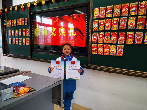 首先,德育负责人刘波宣布了本学期学生各级获奖名单。一张张红彤彤的奖状送到孩子们手里,大家十分高兴。