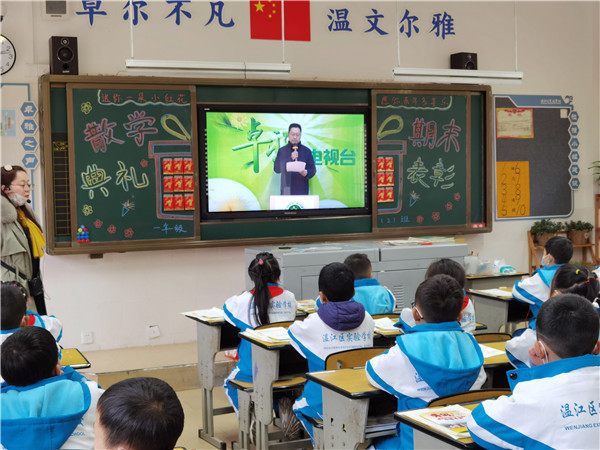 2021年1月25日,温江区实验学校迎来了本学期的散学典礼。与往常略有不同,此次散学典礼采用直播模式进行。