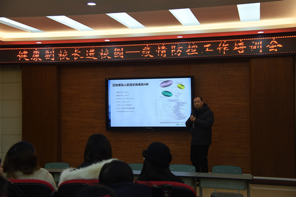 杨副校长就学校防疫物资准备、环境消杀、预防措施、师生健康管理以及异常情况应急处置流程等进行技术培训,并现场指导教师正确佩戴口罩和学习“七步洗手法”。杨副校长就如何做好个人防护、保持正常作息、加强心理疏导等知识进行了具体讲解。通过培训有效地提升了学校疫情防控应急处置能力,为下学期学校安全有序开学做好充分准备。杨副校长表示,下一步将继续履行好健康副校长职责,开展多种形式的学校卫生保健知识培训,不断完善防控措施,用专业知识帮助学校师生消除恐慌,增强战胜疫情的信心和决心,筑牢院校共同抗击疫情的健康“防护网”。