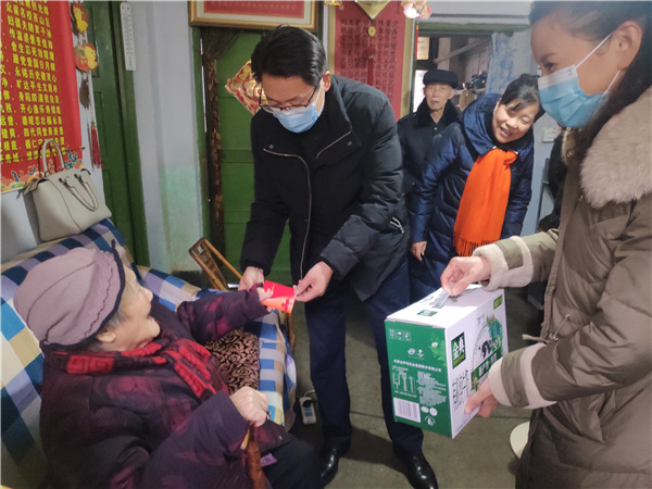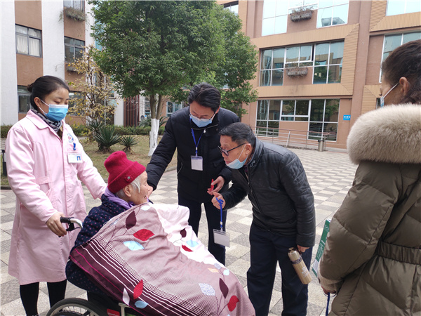 王校长一行分别来到崇州市人民医院、崇州市第二医院、崇州市老年病医院及老教师家里,看望了冯学英、秦世江、陈玉屏等老同志,为他们送上节日慰问礼品,送上新年的问候与祝福。大家与退休老同志亲切交谈,询问了解他们的身体状况和生活情况,认真倾听他们目前面临的困难和问题,鼓励他们积极乐观生活。尤其提醒他们面对目前的新冠肺炎疫情,要带头遵守防疫纪律,不聚集,不外出,春节尽可能就地过年,确保自己和家人健康平安。王校长还特别转达了上级教育部门对退休教师的关心和慰问。句句暖心的话语,让退休教师特别是高龄老人们非常感动,纷纷表达对学校和组织的感谢。