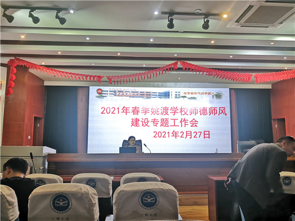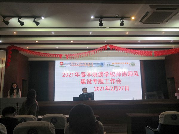 近日,成都市青白江区姚渡学校组织全体教师开展学习师德师风建设活动,通过强化宣传、学习内化、自查自纠、巩固提升,进一步健全了全校师德师风建设的长效机制。会议由王国人校长组织,朱宗文书记、郭玲副校长出席会议,全体教师参与。