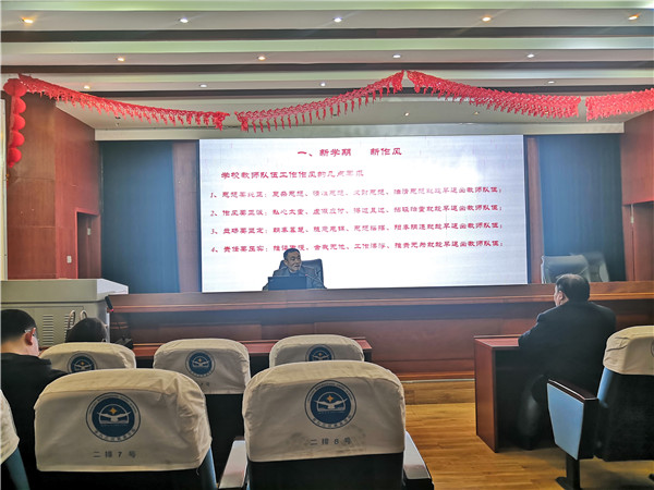 最后,王国人校长对教师队伍师德师风作风提出要求:一是思想要纯正;二是作风要正派;三是立场要坚定;四是责任要压实;五是执行要坚强;六是格局要大气;七是工作要扎实;八是教学要透彻;九是关爱要到位;十是人品要过硬。