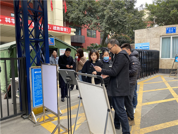 首先,安全组对校园安全第一道防线——安保室进行检查,对安保装备按照督查清单逐一核对,并查看装备有无损毁、老化、过期情况。钟校长还仔细翻阅了出入校园等台账资料,查看天府健康场所码能否正常使用。钟校长要求对外来人员要进行测温、亮码、登记,严格落实防疫要求,同时还指出安保人员要强化安全意识,要留心校园内外的安全情况。