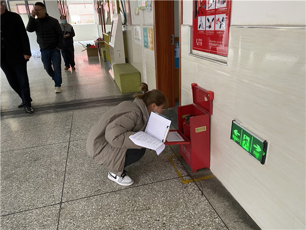 随后,检查组对教室、教师办公室、走廊、楼梯等各处电器开关、插座进行细致检查,一看有无裸露电线,二看能否正常使用,同时对各处消防设施进行检查,查看灭火器气压表、生产日期等。对功能室重点督查了物品的摆放、储存,门上是否设锁。对食堂安全卫生,安全检查组提出了更高要求,进一步加强对食堂从业人员的培训与管理,提高从业人员的安全意识。