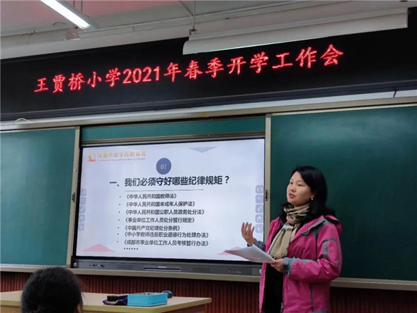 2021年2月27日,成都市王贾桥小学召开了2021年春季开学工作会议。