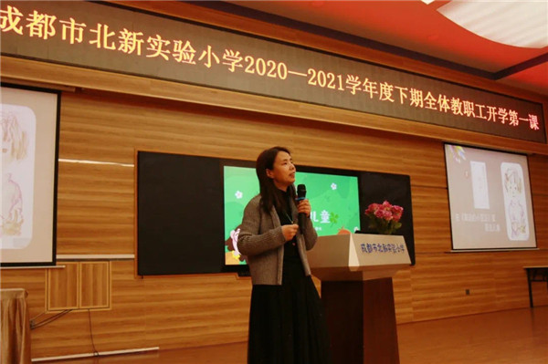 2021年2月27日,成都市北新实验小学全体教职员工用“开学第一讲”,开启他们新一学期的工作。一个“石头剪刀布”的童年游戏,将大家从年味浓浓的寒假迅速带回了欢乐的开讲现场。