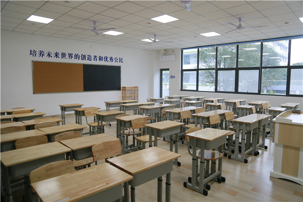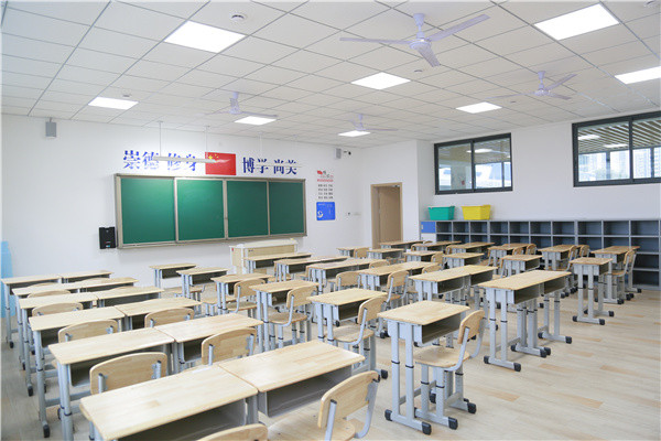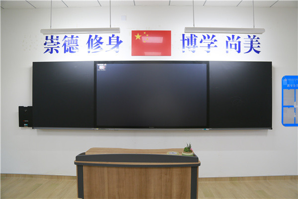 教室是同学们在学校学习的主阵地,考虑到同学们的用眼强度,新世纪外国语学校在教室里全都采用护眼灯,亮度会随光线而变化。还有最新科技的“神奇黑板”,无论是在教室的哪个位置,无论是什么角度,同学们都不会再有黑板反光的困扰。并且为了采光效果,新世纪外国语学校的每一间教室都是大窗设计。