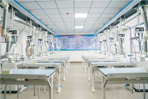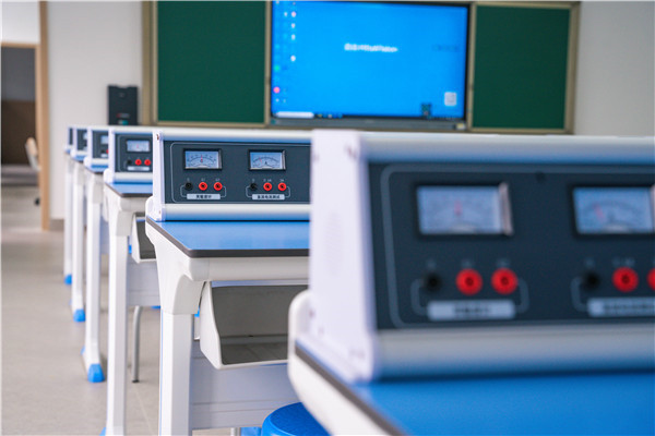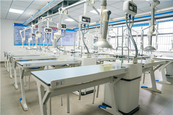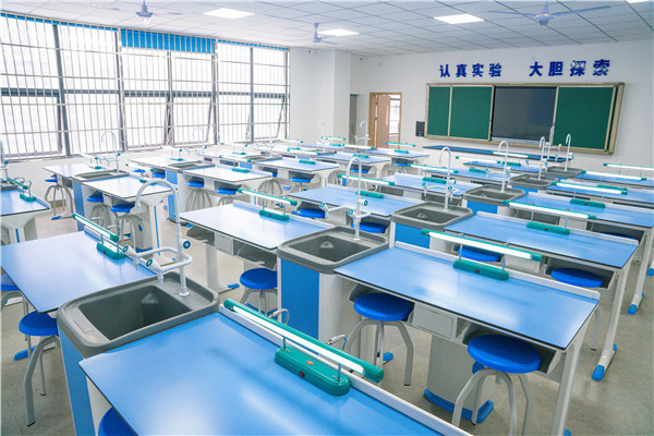 新世纪外国语学校还有三个“斥巨资”的教室——化学实验室和生物实验室以及物理力学电学实验室。化学实验室有可移动、可360度旋转、可控制风速的悬挂式外向新风通风系统,可以覆盖到实验台的每一个角落,操作简单却可以保证同学们的实验安全,造型超级酷炫。老师也可以操控到每一个座位的水电气,所有展示也都在玻璃展示台上进行,保障同学们的安全。生物实验室保证每位同学都有一台生物显微镜,教室也配备有生物照明灯。物理实验室的所有低压电也都是由老师操控的,实验室的桌面都是防腐蚀的陶瓷材料。新世纪外国语学校真的是在提供给孩子们最先进的实验课程的同时保障孩子们的健康安全。