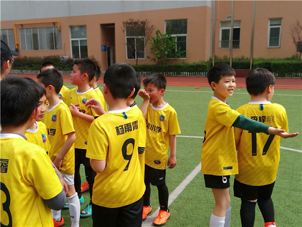 本次比赛的地点在天回小学锦北校区,该校三年级男子足球队14人全员参与,按照“五人制”足球赛规则进行。开赛前,两队队员们进行了热身活动,双方教练对比赛战术进行详细部署。