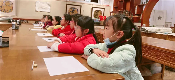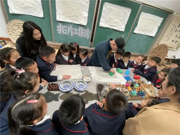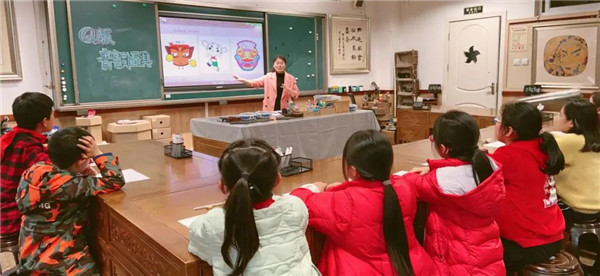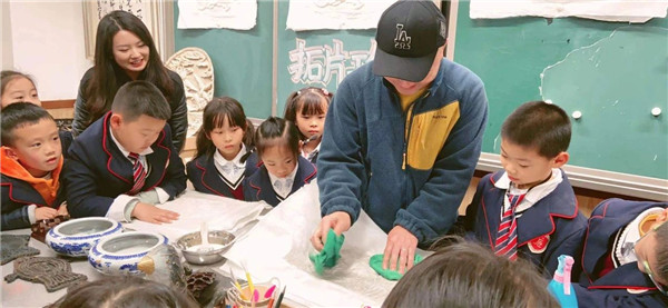 近日,成都高新区锦城小学开展了一堂有趣的艺术课。在学校四楼美术活动室,书法老师、美术老师以及受邀而来的博物馆专家冯老师,给同学们展示了毛笔字、画青铜面具以及古代马车画像砖的拓印方法。