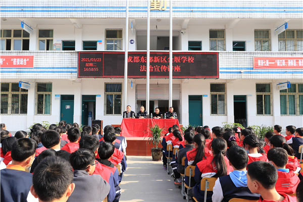 为深入开展法治宣传教育,弘扬社会主义法治精神,进一步培养自身的法治观念,努力构建和谐平安文明校园,2021年3月23日下午,成都东部新区金堰学校邀请海螺镇政法委书记陈青松、草池派出所田警官和张警官为全校师生举行了一场别开生面的法治教育讲座。