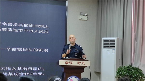 最后,吴教官分享了一句话:“衣服扣错了可以解开重新扣上,但人生却再也没有回头路,所以青年人处在人生的关键阶段,人生的扣子从一开始就要扣好。”鼓励同学们树立正确的人生观及远大理想,做一个知法、懂法、守法的优秀少年。