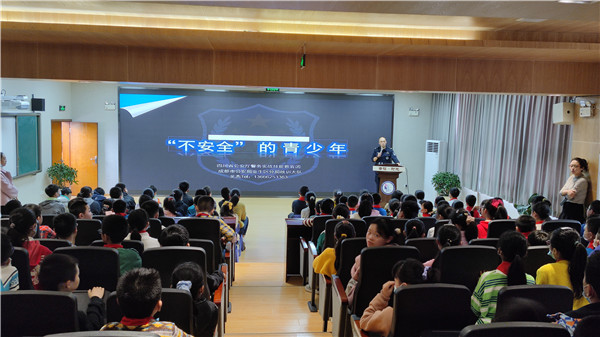 2021年3月18日下午14点,成都市锦西外国语实验小学邀请吴杰教官(成都市公安局金牛区分局战训大队教官、四川省公安厅警务实战技能教官团指导教官)到校给六年级的全体学生带来了“法制教育进校园、知法懂法助成长”主题讲座。吴教官针对目前青少年违法犯罪现象呈上升的情况入手,对青少年违法现象、原因及对策进行了精彩的宣讲。