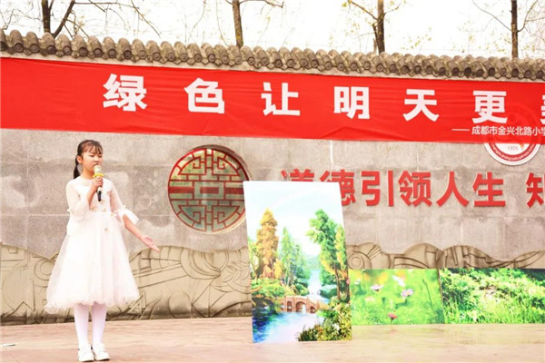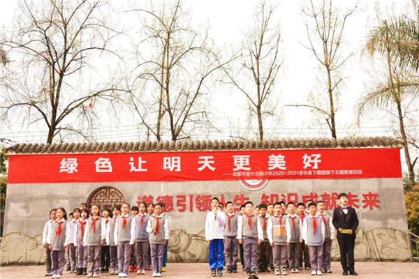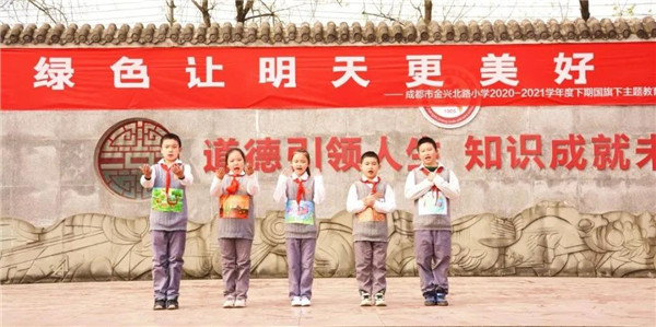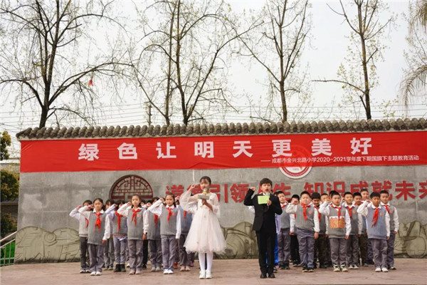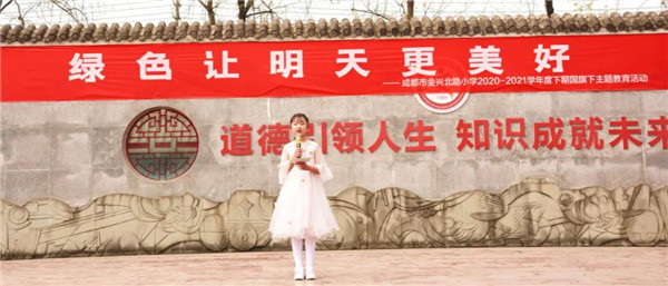 2021年3月21日,成都市金兴北路小学四一中队“绿色让明天更美好”国旗下主题教育活动在小主持人尹梓琼的闪亮登场中徐徐拉开了帷幕。