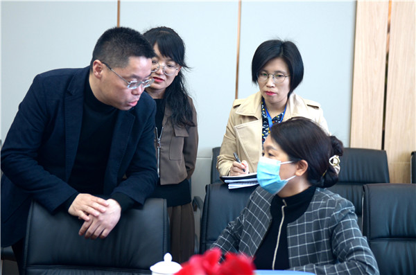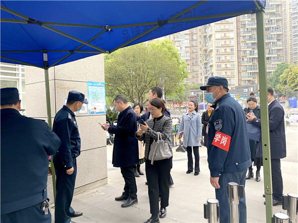 专家领导们在完成健康扫码后,学校德育副校长邓梅、教学副校长卢杨及支部副书记龚礼树携学校管理团队成员向专家们汇报了学校基本情况及文化。踏上“至美路”,看校训石“立德立行,至真至美”,听时光树蕴含办学理念,看国际化外墙展板,赏班级学生作品,品开放书吧阅读乐趣,感时光剧场提供学生展示舞台。专家们表示学校处处浸润“生命教育·至美主张·麦芒符号”的顶层文化,时时体现办学目标。