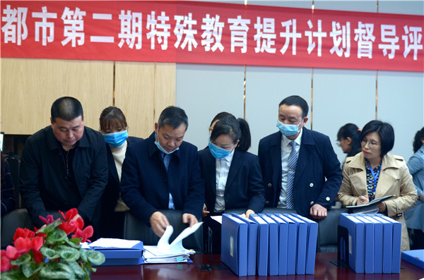 然后,各位专家及领导对资源教室的资料进行了评估,尤其是对随班就读学生安置评估流程、特殊教育的经费保障、资源教室的人员配备及管理等方面进行了重点交流。陪同指导工作的还有温江区教育局督导室主任杨智涌、区教育局基础教育科科长李中华,区特教学校校长陈勇、徐秋玲等,各位专家领导对学校的特殊教育工作给予了充分的肯定。