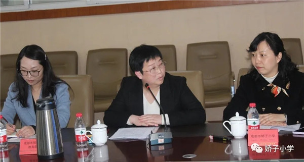 锦江区教育局对外交流和科技信息科宋科长就锦江教育发展状况与来宾进行了交流。梁校长以“传承天府文化,培养家国情怀”为题从文化浸润、课程落地、活动生根三个方面与来宾们分享了学校将天府文化融入到学校教育实践的做法。最后,学校与来宾们围绕家国情怀培养的校本实践展开了深入的座谈交流。