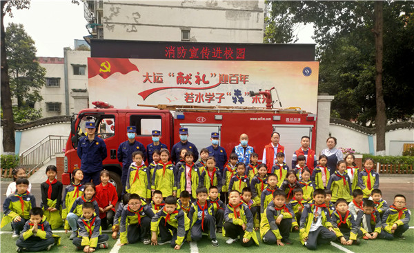 为了让孩子们知道更多的消防知识,荆竹社区消防站的消防叔叔们来到成都市双水小学为孩子们普及消防安全知识。