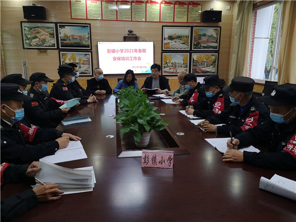 为进一步加强校园安全管理,增强安保人员责任意识,提升反恐防暴能力,2021年3月31日,双流区彭镇小学召开安保工作培训会。