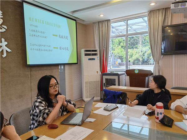语文组教研活动围绕“浅谈‘四有课堂’中的‘有问’”主题,由二年级语文组老师主讲。罗伟霞老师从教师层面,结合课例《古诗二首》,以“如何确立核心问题”为切入口进行交流;黄志宏老师结合高段群文阅读教学案例,跟大家分享如何巧用导学单,达成孩子思维进阶,学会辨识提取、比较整合阅读信息,并进行评价、反思、应用,最后达到创造性复述、续编;张璐老师以《中国美食》为例,就“如何激发学生提问”谈到自己的做法;赵丹老师在交流中提出“搬——论——捕”的方法逐步培养孩子高阶思维。在交流环节,全体语文老师积极参与,结合自己在教学中遇到的困惑以及解决方法做剖析,每位老师都受益匪浅。