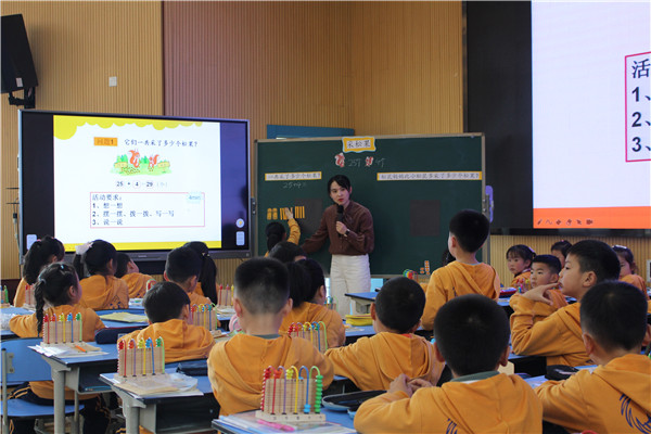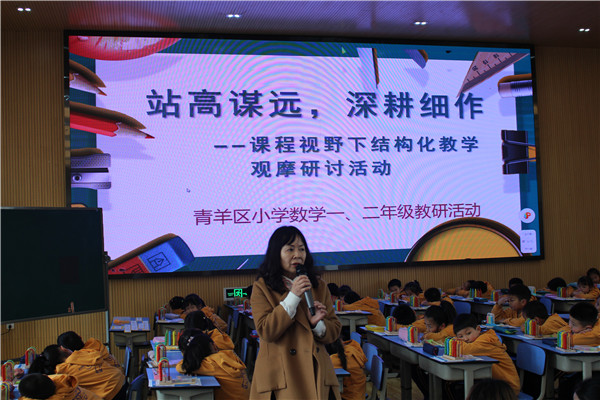 4月7日下午,在青羊区数学教研员郭学琴老师的精心策划下,全区一、二年级数学老师在成都市金沙小学参加了内容丰富、极具指导性的计算教学研讨活动。本次研讨活动的主题是“站高谋远,深耕细作——基于结构化视野下的课堂教学”。