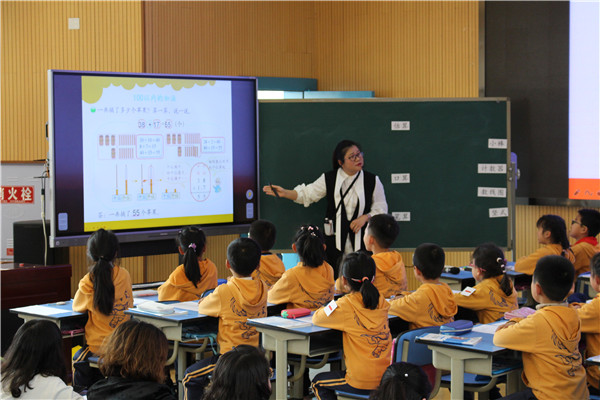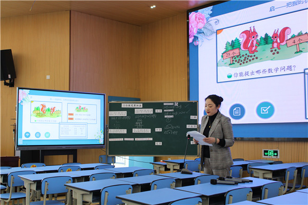 在郭学琴老师的引领下,全区一、二年级数学老师积极听课并参与讨论和互动,大家争先恐后地发表自己的意见和建议。大家一致认为今天的两节课打破了计算教学的常态教法,把课堂真正还给了学生,学生学会的不是知识点,而是整个计算教学关于加减法的算理和方法。学生自主地获取知识,寻找联系,尤其是学会迁移是大家惊讶和叹服的。