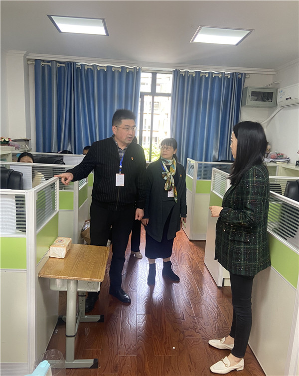 学校党支部钟奕军书记、何敏副书记和行政办李娜主任、黄莉莉老师、刘敏老师依次走进各年级、各学科教师办公室,对物品摆放、文化特色、安全防范等方面进行了细致地检查评比。