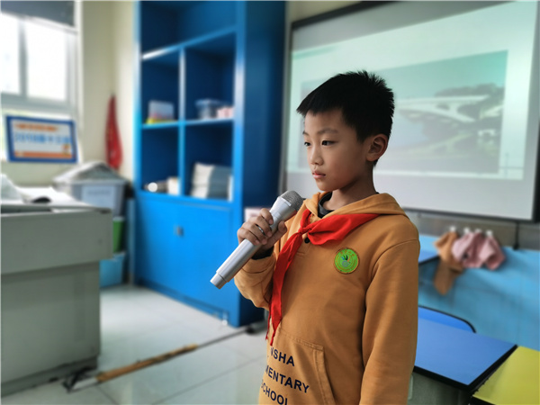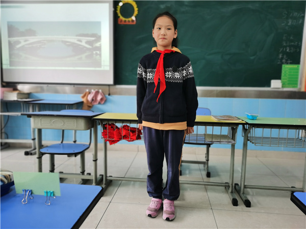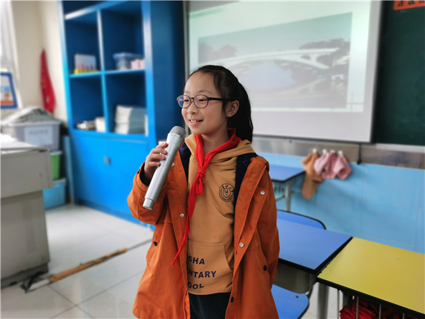 接着,何老师让大家分小组进行讨论,孩子们轮流扮演导演,向“游客”们介绍赵州桥。