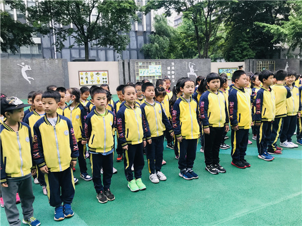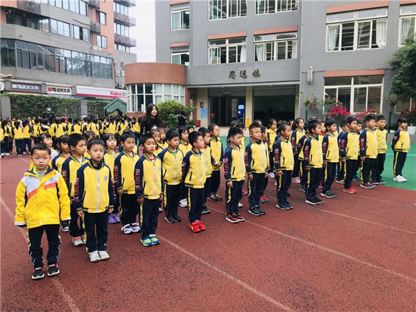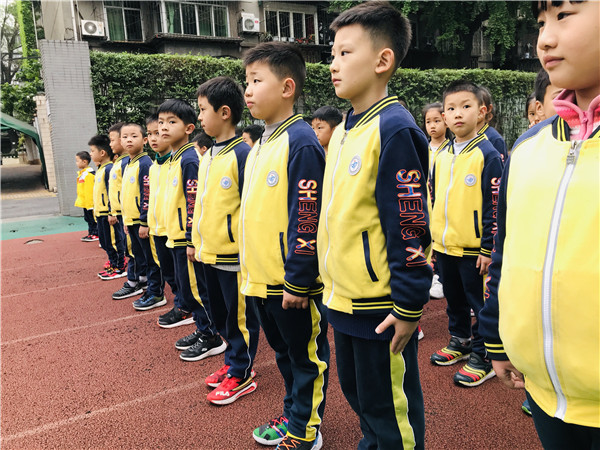 “脚跟靠拢并齐,两臂自然下垂,中指贴于裤缝,两眼向前平视。”“稍息,立正,向右转……”解放军叔叔的号令声不时在学校上空回荡。经过半个多小时的队列训练,原本有些散乱的队形越发整齐了,原本还有些分不清左右的小朋友转向一致了,原来有些凌乱的步伐整齐划一了。孩子们挺胸抬头,高高的昂着头,红扑扑的小脸上浮现出了认真严肃而又自豪的表情。