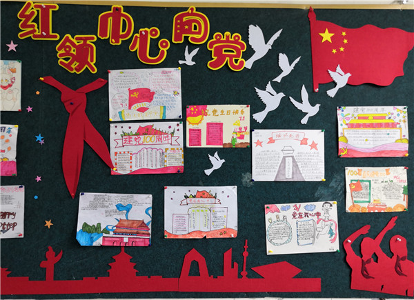 黑板报是成都市抚琴小学德育的重要宣传阵地,为庆祝中国共产党成立100周年,营造良好的班级氛围,新学期伊始,学校组织各班级开展了以“献礼建党100周年”为主题的黑板报绘制活动。通过黑板报对全体师生开展党史学习教育,引导广大抚琴学子继承革命传统、传承红色基因、弘扬革命精神,争做担当民族复兴大任的时代新人。