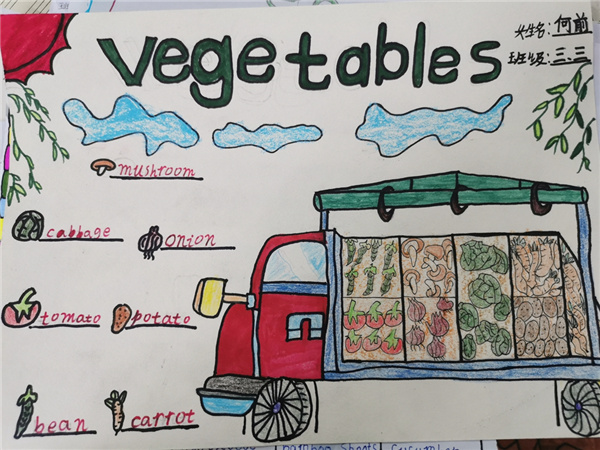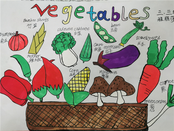 近日,成都市温江区踏水学校三年级开展了以“蔬菜Vegetables”为主题的英语作业写绘活动。作为课外的英语写绘,以其创办简单、内容实用、可操作性强等特点,对英语学习起到了极大的帮助作用。它不仅能激发孩子们的英语学习兴趣、增加自信,还可以帮助孩子们更好地开发智力、锻炼能力、培养习惯。
