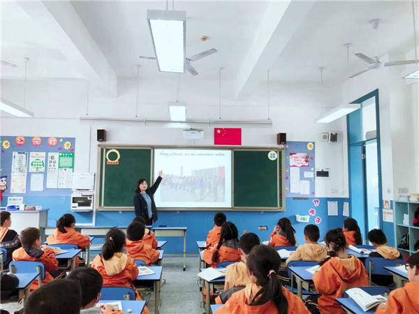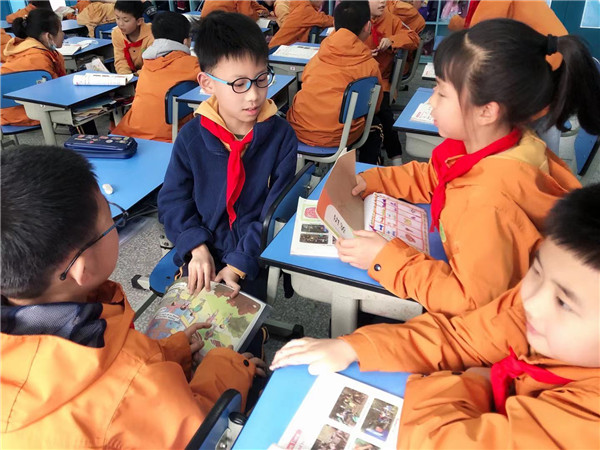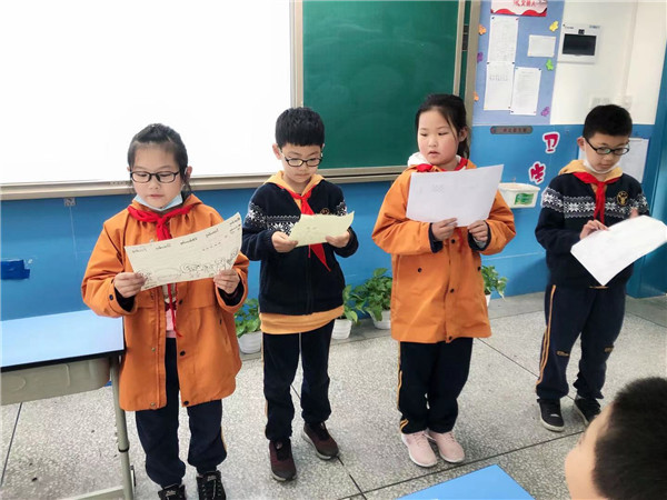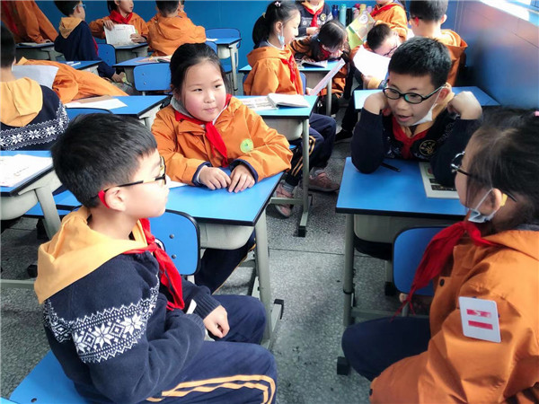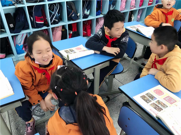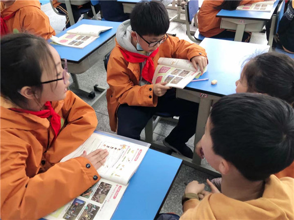 接下来,同学们四人一组用英语进行了热烈的交流讨论。