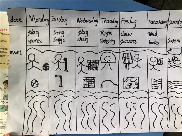 然后,同学们将自己参加的课外活动用表格的形式记录了下来。